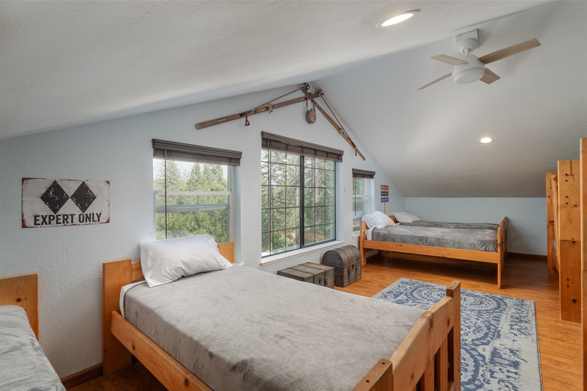 •Ski Room: Sleeps up to 6 with two bunk beds and four twin beds.